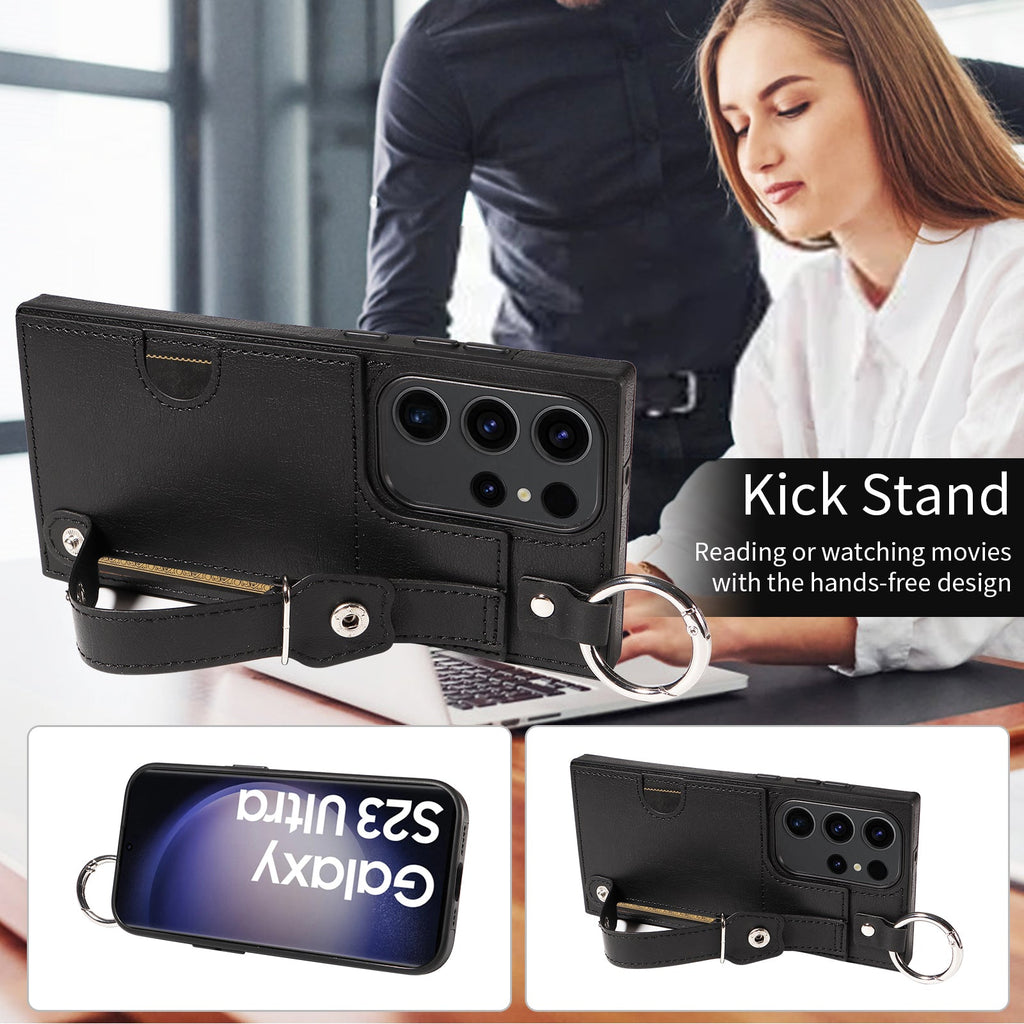 Quality PU Leather Single Card Samsung Galaxy S23 Ultra Case with Hand Strap