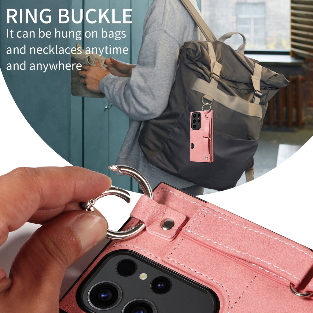 Quality PU Leather Single Card Samsung Galaxy S23 Ultra Case with Hand Strap