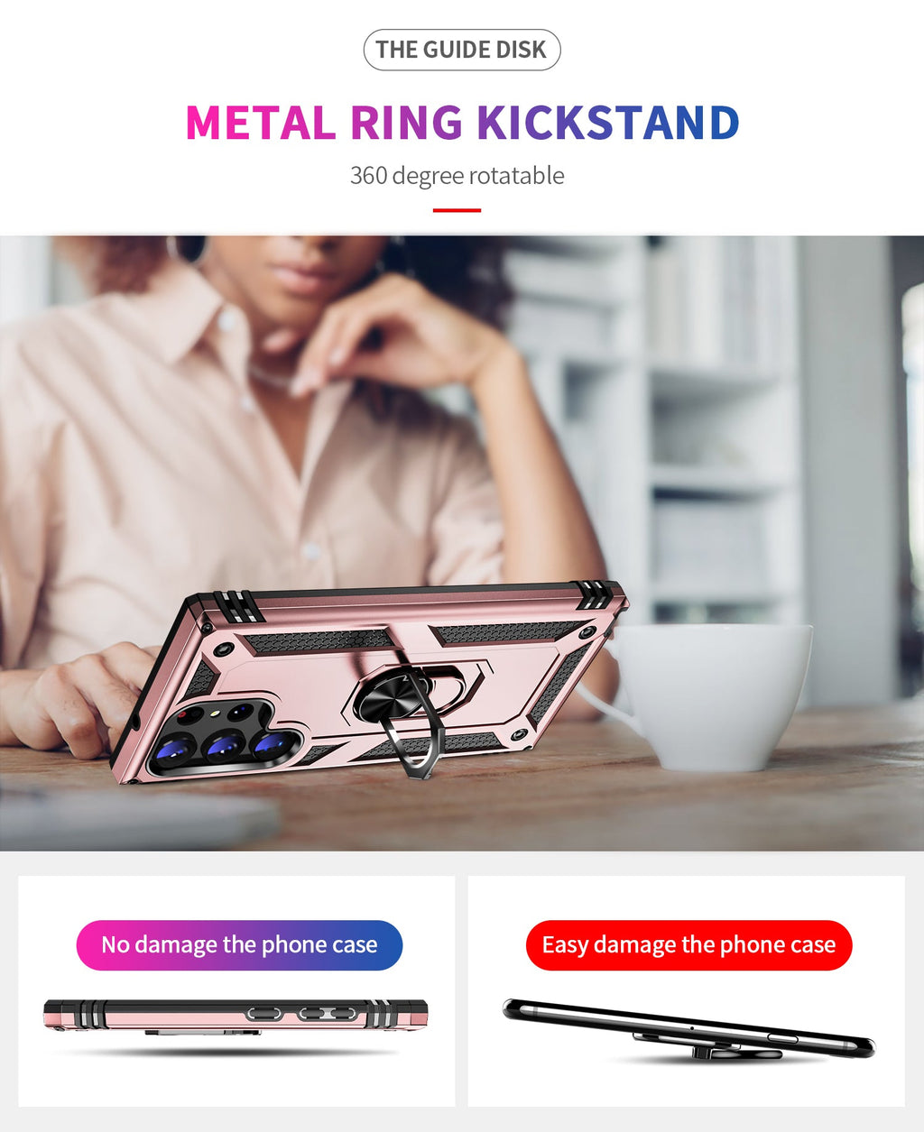 360 degree rotatable aluminum alloy ring kickstand on the Samsung Galaxy S23 Ultra Case allows for the optimal viewing position