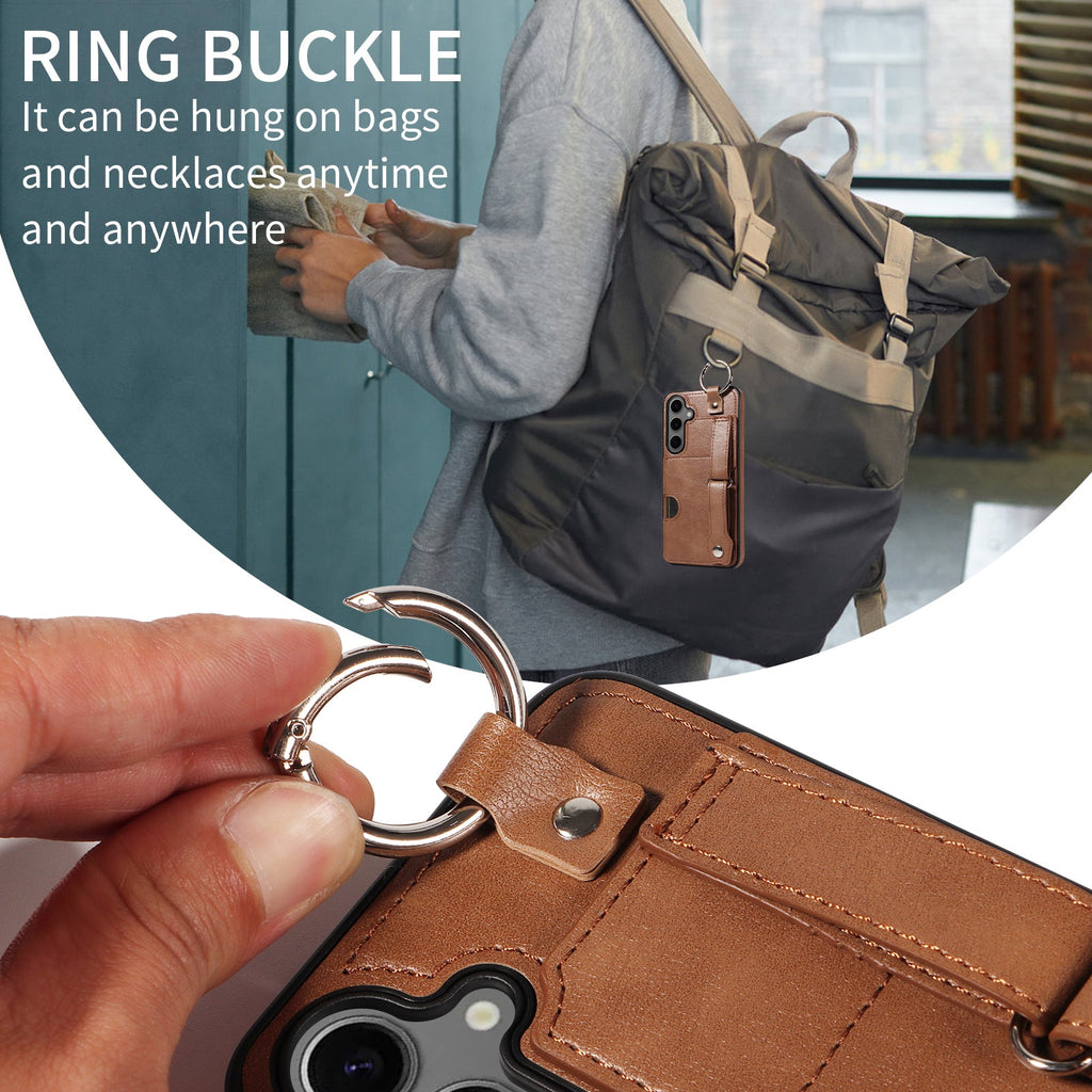 Quality PU Leather Single Card Samsung Galaxy S24+ Case with Hand Strap