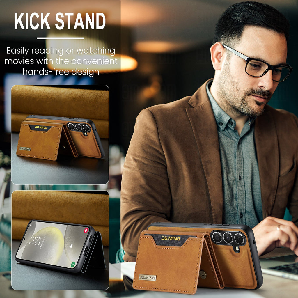 DG.MING Samsung Galaxy S24 Case features a two-in-one design with a phone case and a mini wallet that can be attached together by strong magnetism.