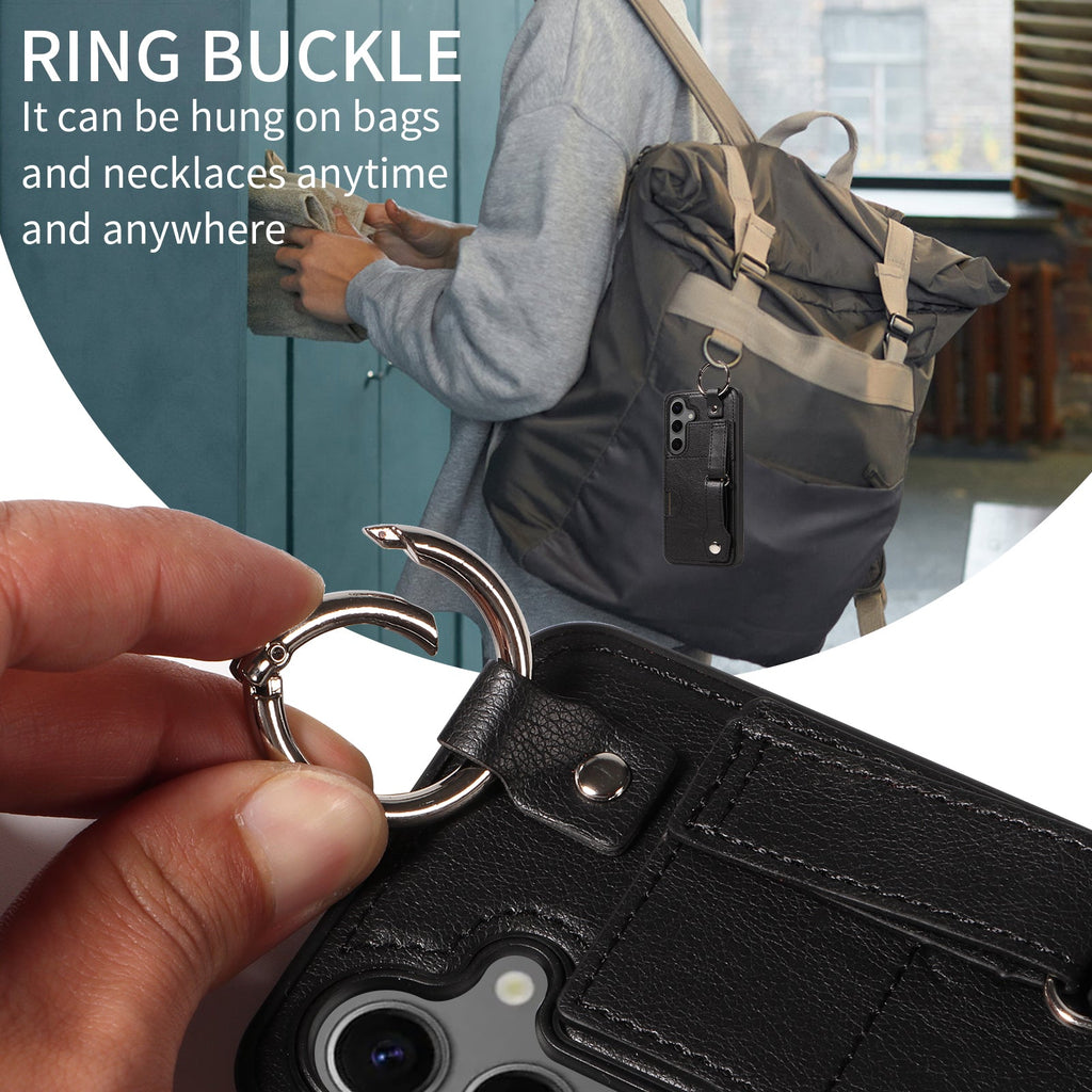 Quality PU Leather Single Card Samsung Galaxy S24 Case with Hand Strap