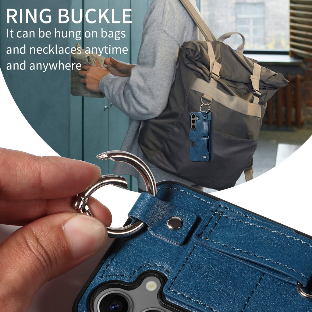 Ring buckle on the top can be used to hung the phone on bags