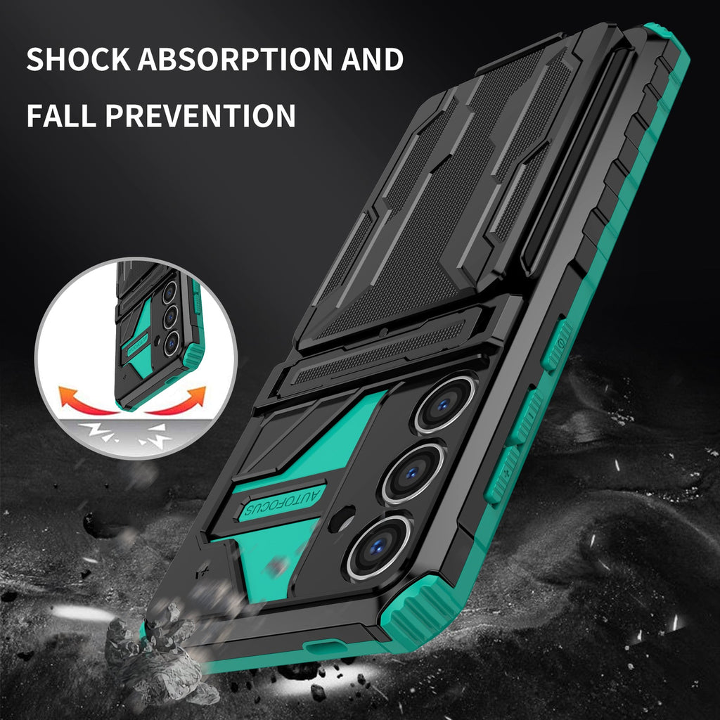 Slide Down Card Holder Samsung Galaxy S24 FE Case, Heavy Duty Rugged Samsung Galaxy S24 FE Case, Defender Armour Samsung Galaxy S24 FE Case, Kickstand Samsung Galaxy S24 FE Cover, Shockproof Tough Samsung Galaxy S24 FE Cover, Drop protection for Samsung Galaxy S24 FE