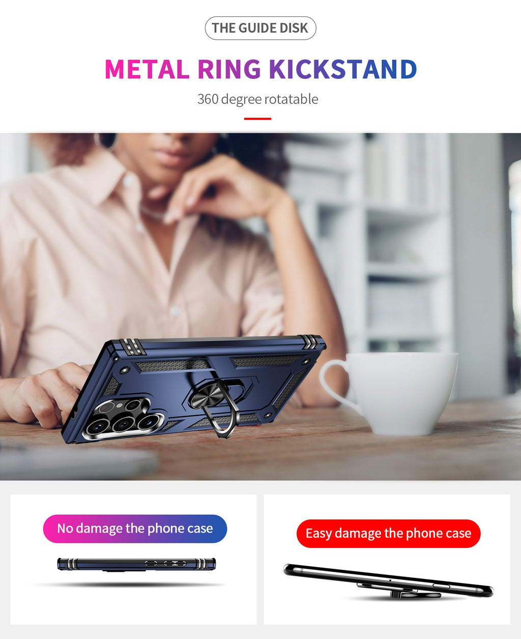 360 degree rotatable aluminum alloy ring kickstand on Samsung Galaxy S24 Ultra Case allows for optimal viewing position