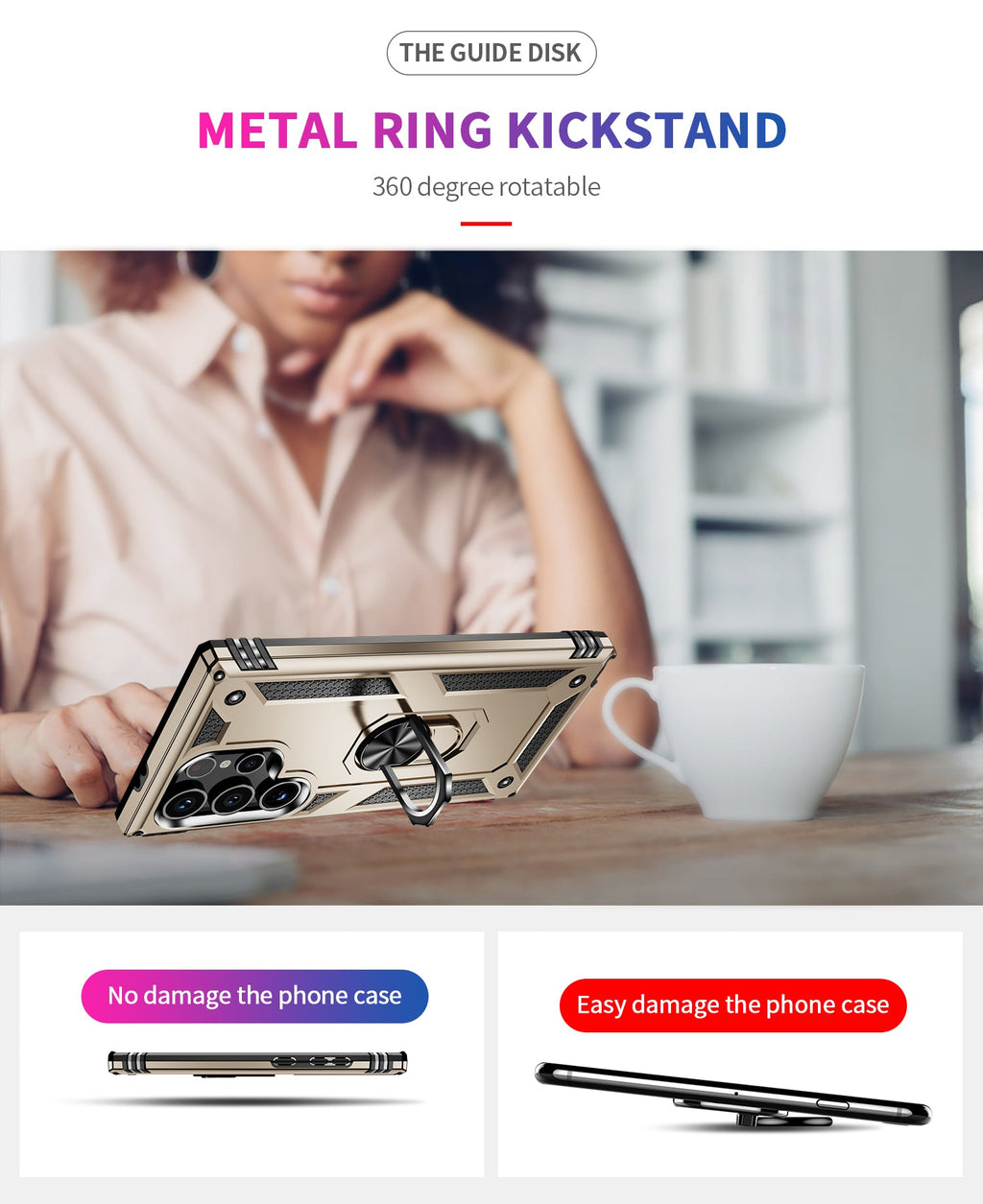 360 degree rotatable aluminum alloy ring kickstand on Samsung Galaxy S24 Ultra Case allows for optimal viewing position