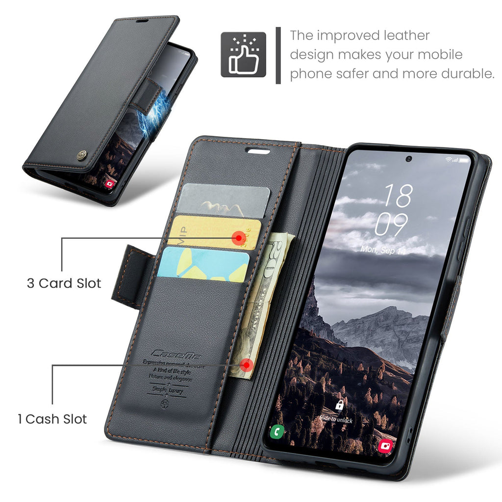 CaseMe Retro PU Leather Wallet Case for Samsung Galaxy S25FE – RFID, Card Slots, Stand Function