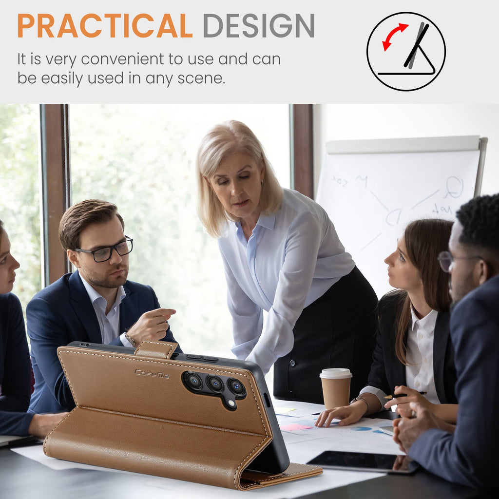 CaseMe Retro PU Leather Wallet Case for Samsung Galaxy S25FE – RFID, Card Slots, Stand Function