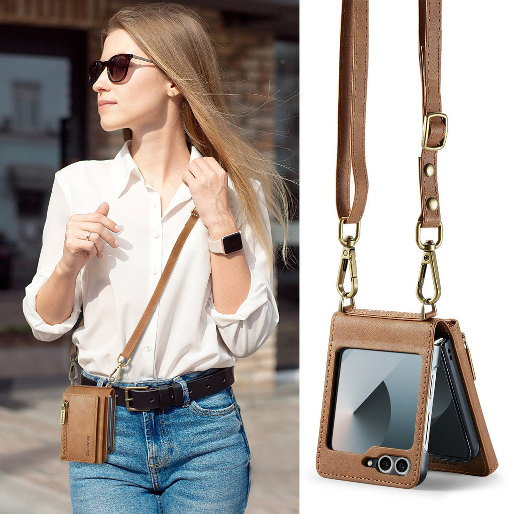 High quality DG.MING Samsung Galaxy Z Flip 6 Case features a two-in-one design with a phone case and a mini wallet that are attached together by strong glue.