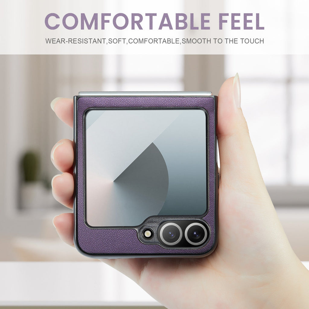 Introducing a stylish case cover designed for Samsung Galaxy Z Flip 6. Crafted with a stylish PU leather material, this cover adds a deluxe look to your device.