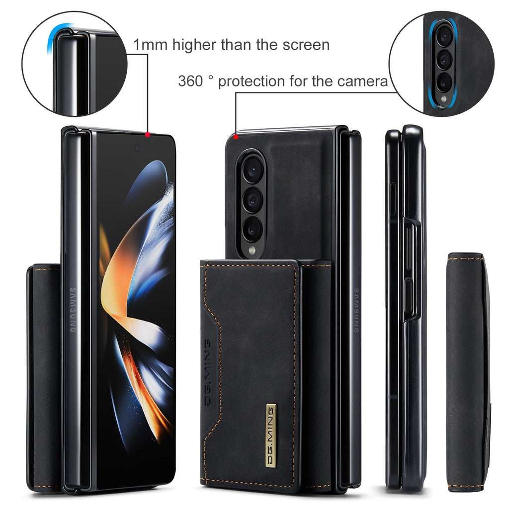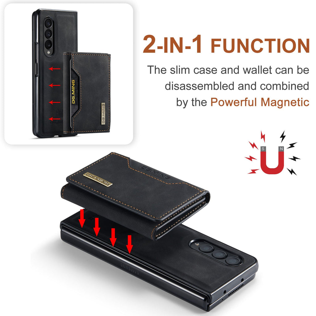 DG.MING Samsung Galaxy Z Fold 4 Case features a two-in-one design with a phone case and a mini wallet that can be attached together by strong magnetism.