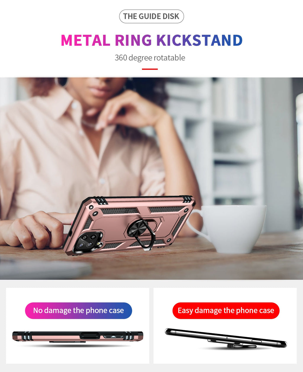 360 degree rotatable aluminum alloy ring kickstand on the Samsung M32 Case 4G allows for the optimal viewing position
