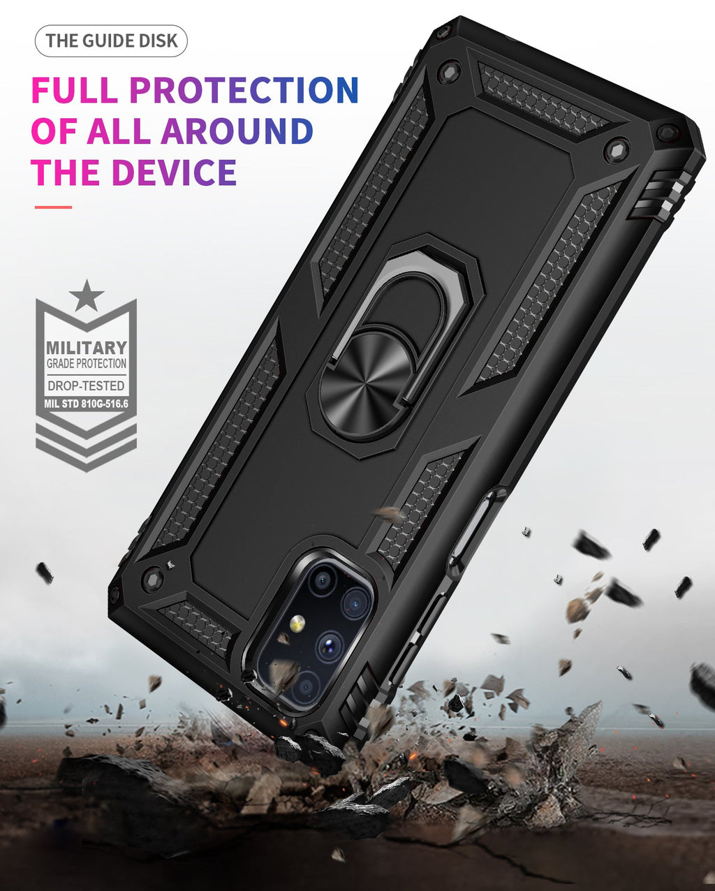 Brand New Premium Quality Heavy Duty Military Armour Kickstand Rugged Samsung M51 Case With 360 Degree Rotatable Ring Grip Holder And Metal Patch
