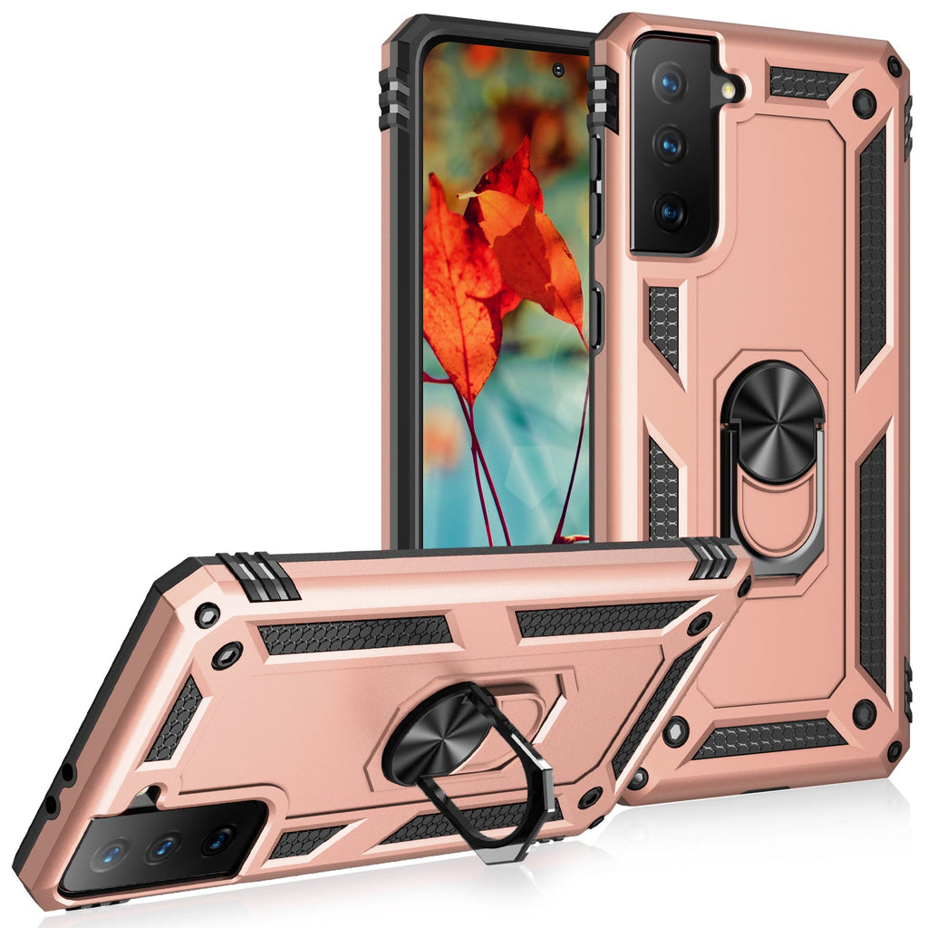 Brand New Premium Quality Heavy Duty Military Armour Kickstand Rugged Samsung S21 Case With 360 Degree Rotatable Ring Grip Holder And Metal Patch