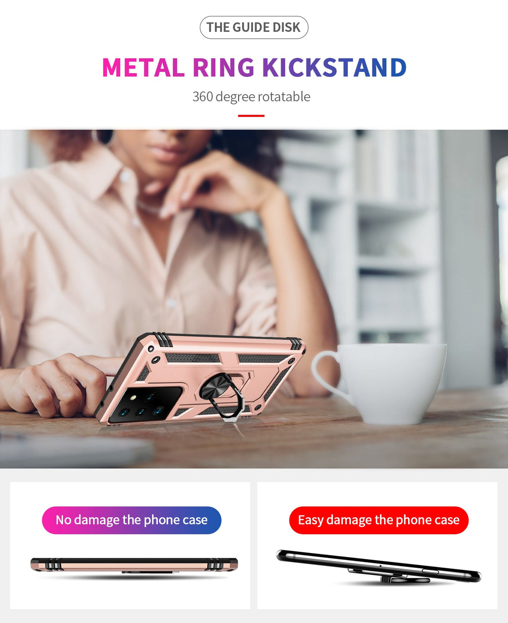 360 degree rotatable aluminum alloy ring kickstand on the Samsung S21 Ultra Case allows for the optimal viewing position