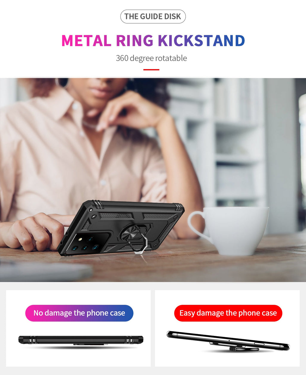 360 degree rotatable aluminum alloy ring kickstand on the Samsung S21 Ultra Case allows for the optimal viewing position