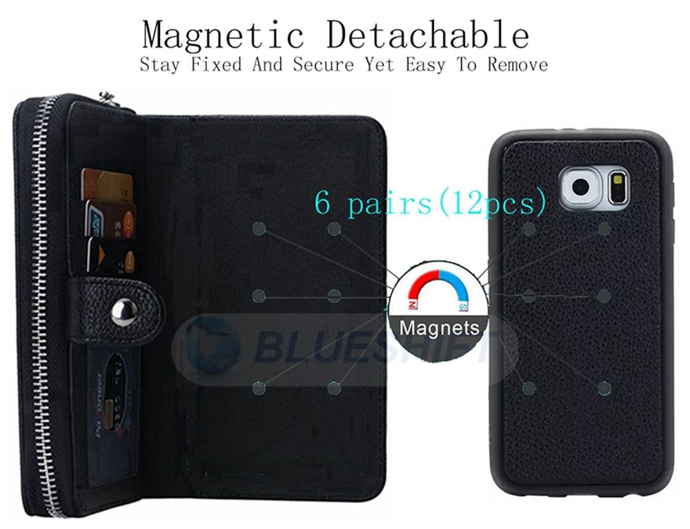 2 in 1 design with zipper wallet and detachable slim Samsung S6 Case