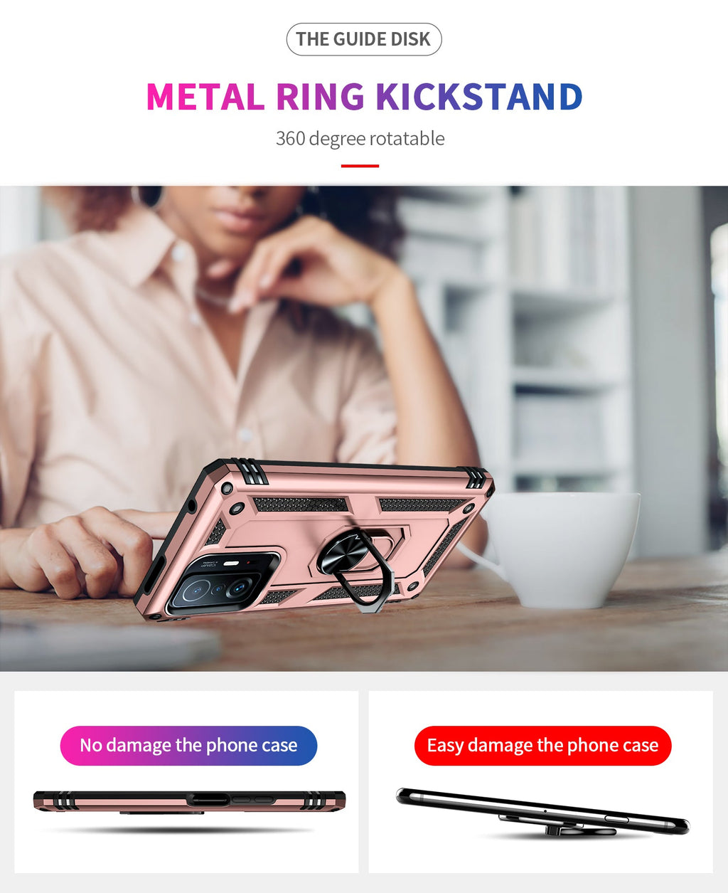 360 degree rotatable aluminum alloy ring kickstand on the Xiaomi 11T Case allows for the optimal viewing position