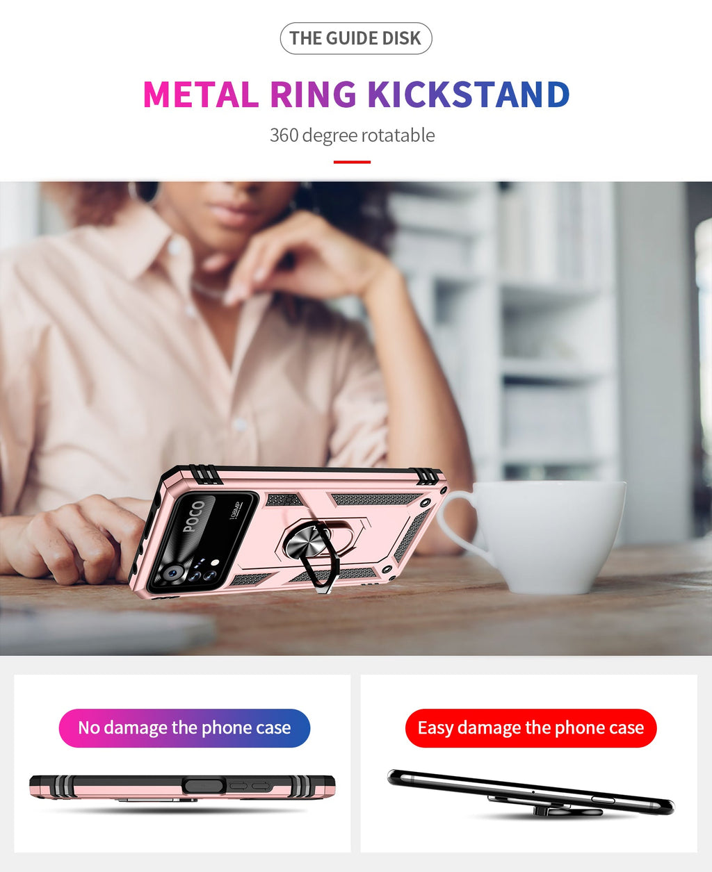 360 degree rotatable aluminum alloy ring kickstand on the Xiaomi Poco X4 Pro 5G Case allows for the optimal viewing position