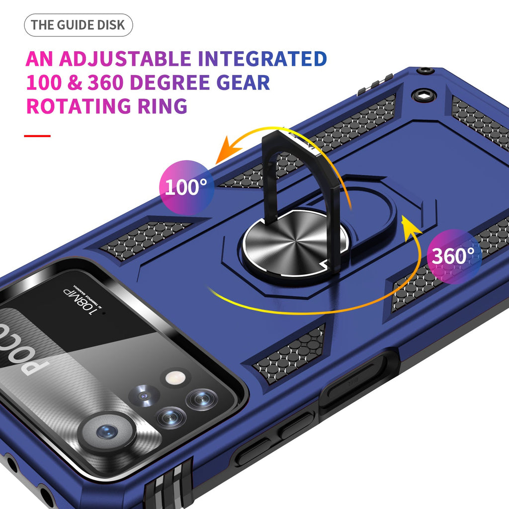360 degree rotatable aluminum alloy ring kickstand on the Xiaomi Poco X4 Pro 5G Case allows for the optimal viewing position