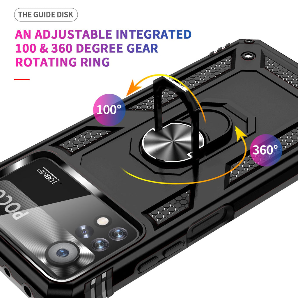 360 degree rotatable aluminum alloy ring kickstand on the Xiaomi Poco X4 Pro 5G Case allows for the optimal viewing position