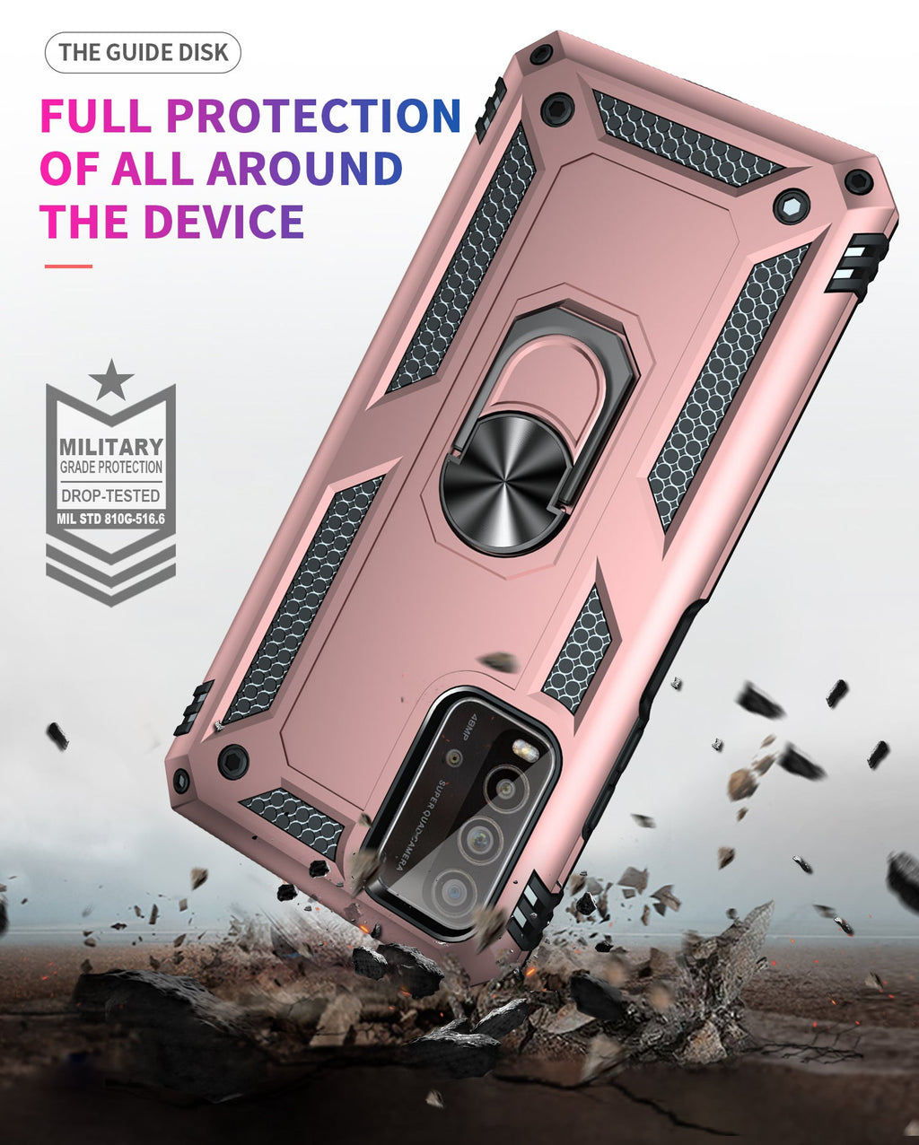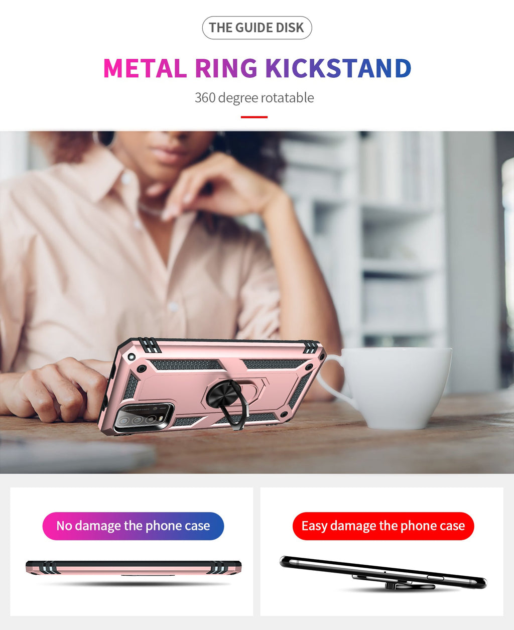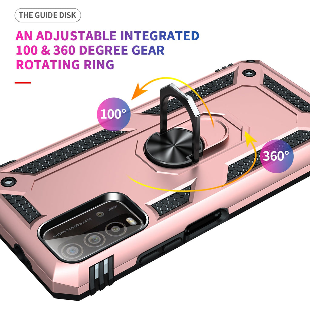 360 degree rotatable aluminum alloy ring kickstand on the Xiaomi Redmi 9T Case allows for the optimal viewing position