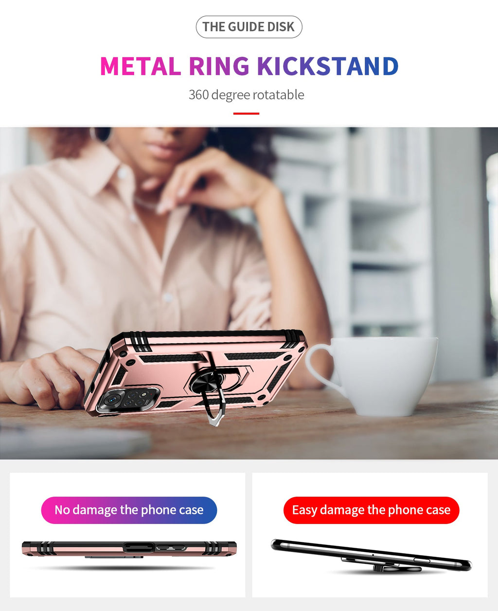 360 degree rotatable aluminum alloy ring kickstand on the Xiaomi Redmi Note 11 Case 4G allows for the optimal viewing position