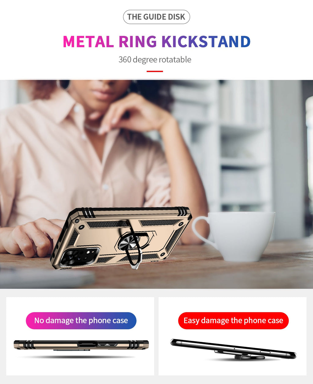 360 degree rotatable aluminum alloy ring kickstand on the Xiaomi Redmi Note 11 Pro Case 4G allows for the optimal viewing position