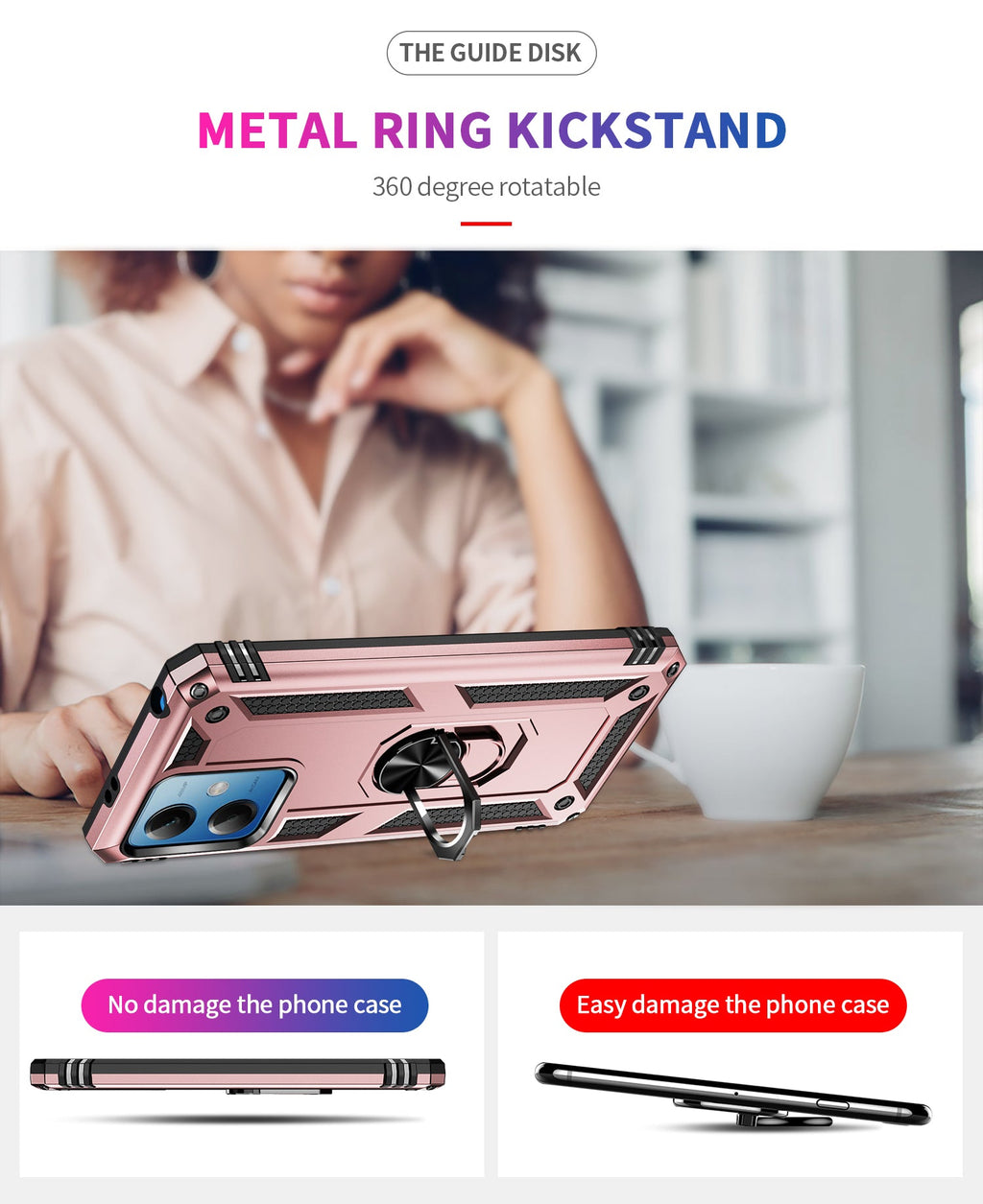 360 degree rotatable aluminum alloy ring kickstand on the Xiaomi Redmi Note 12 5G Case allows for the optimal viewing position