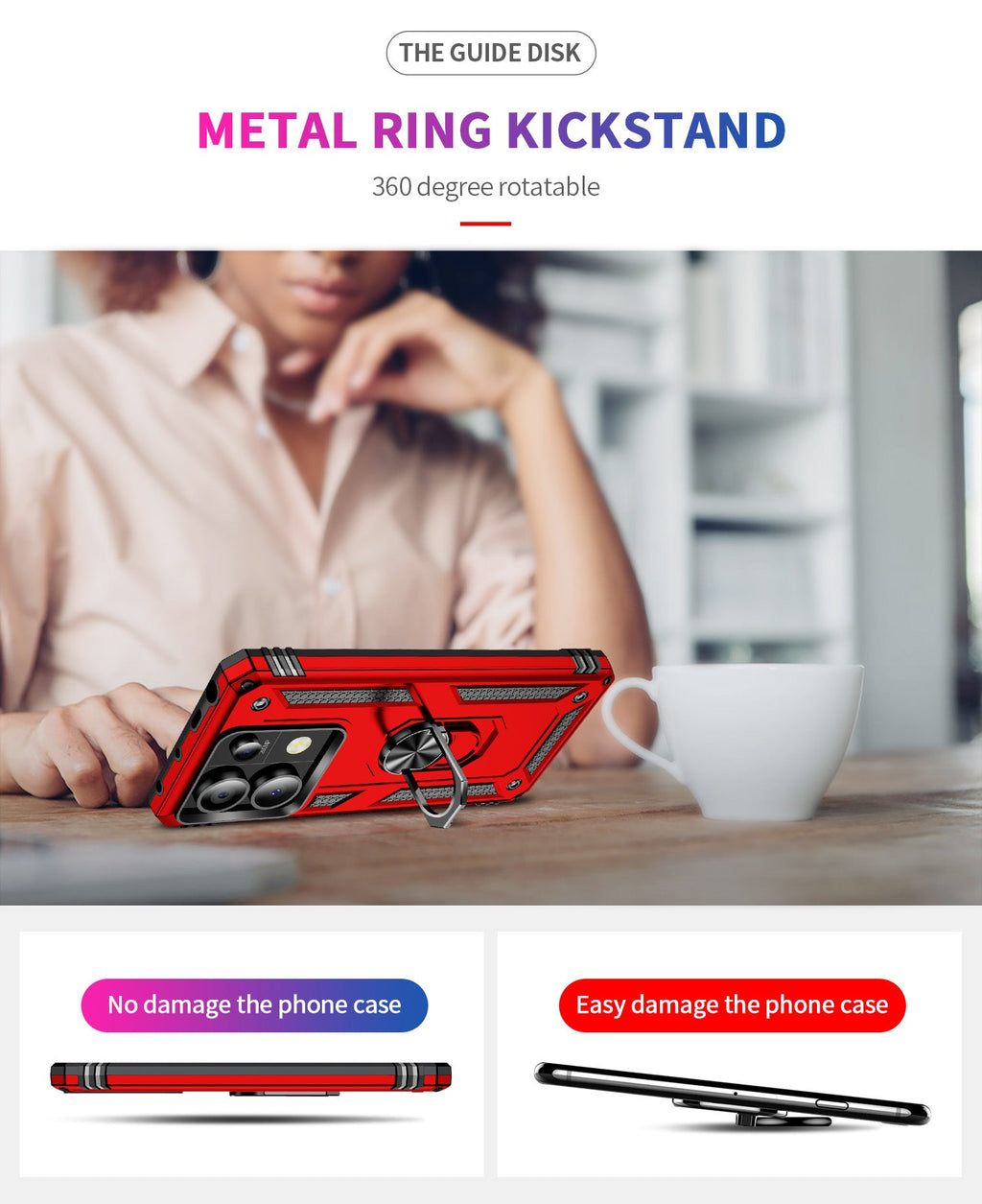 360 degree rotatable aluminum alloy ring kickstand allows for optimal viewing position