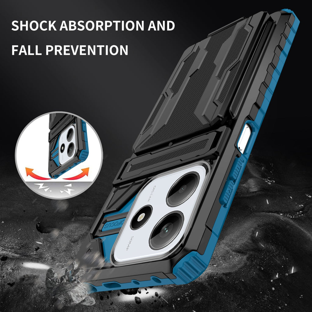 Slide Down Card Holder Xiaomi Redmi Note 14 5G Case, Heavy Duty Rugged Xiaomi Redmi Note 14 5G Case, Defender Armour Xiaomi Redmi Note 14 5G Case, Kickstand Xiaomi Redmi Note 14 5G Cover, Shockproof Tough Xiaomi Redmi Note 14 5G Cover, Drop protection for Xiaomi Redmi Note 14 5G