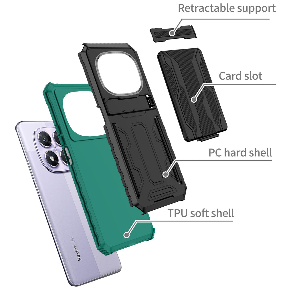 Slide Down Card Holder Xiaomi Redmi Note 14 Pro 5G Case, Heavy Duty Rugged Xiaomi Redmi Note 14 Pro 5G Case, Defender Armour Xiaomi Redmi Note 14 Pro 5G Case, Kickstand Xiaomi Redmi Note 14 Pro 5G Cover, Shockproof Tough Xiaomi Redmi Note 14 Pro 5G Cover, Drop protection for Xiaomi Redmi Note 14 Pro 5G