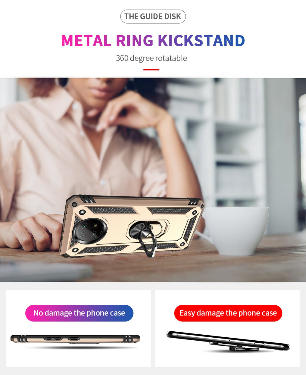 360 degree rotatable aluminum alloy ring kickstand on the Xiaomi Redmi Note 9T Case allows for the optimal viewing position