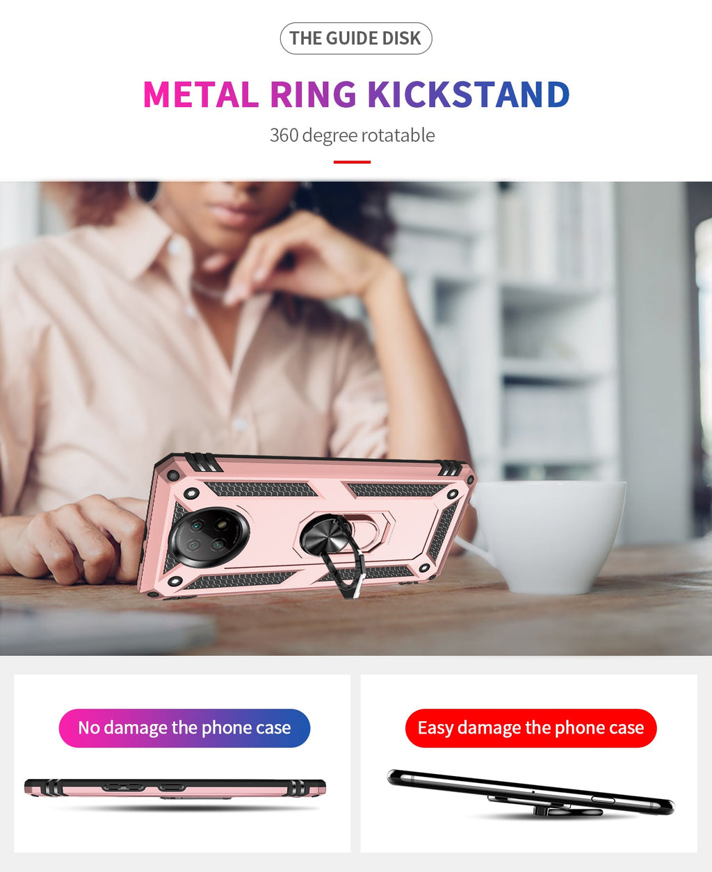 360 degree rotatable aluminum alloy ring kickstand on the Xiaomi Redmi Note 9T Case allows for the optimal viewing position